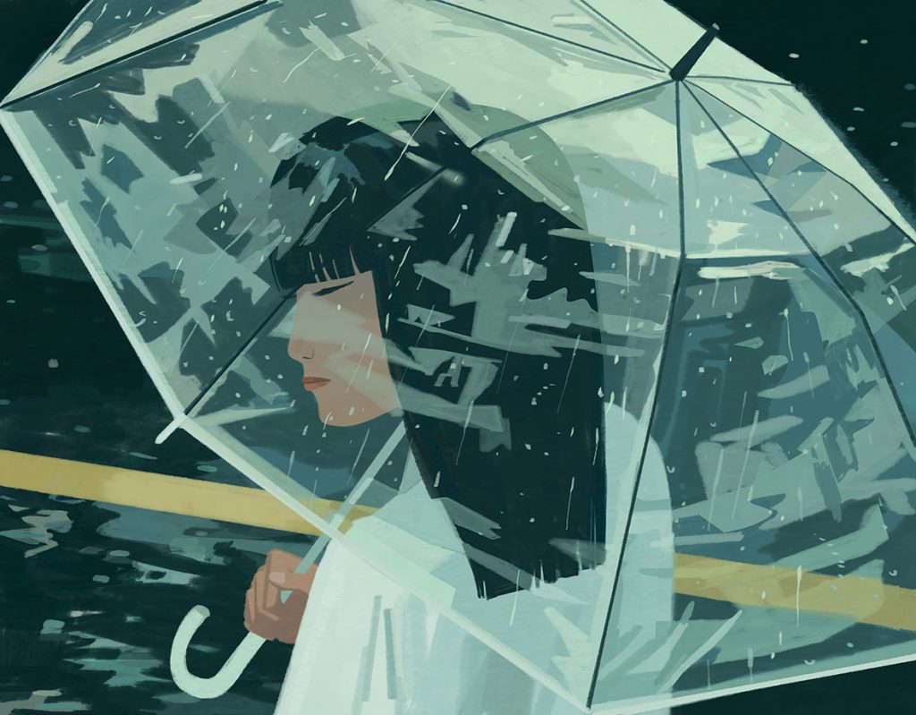 In Tokyo, on rainy days, at the station exit there is a woman waiting with her umbrella already open, ready to walk alongside strangers. It’s a job, but also a ritual — a precious gesture of listening and care: under that circle that shields from the rain, the world comes to a halt.